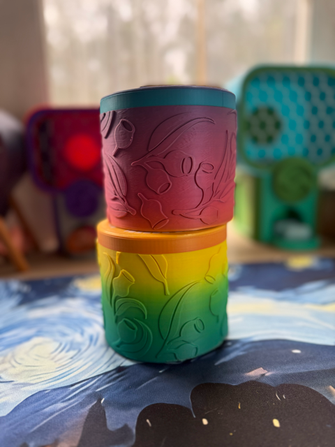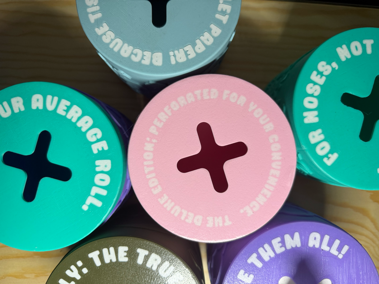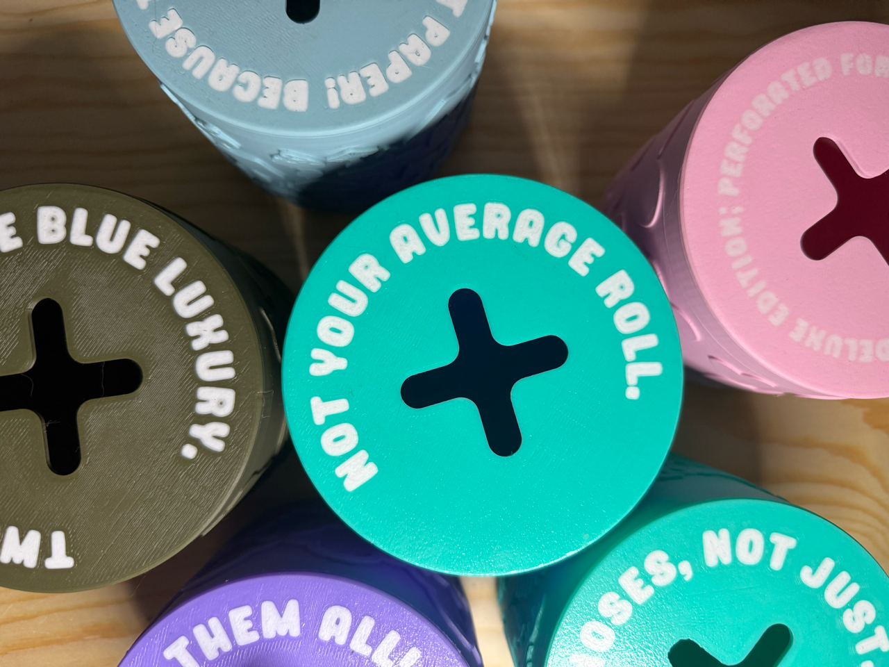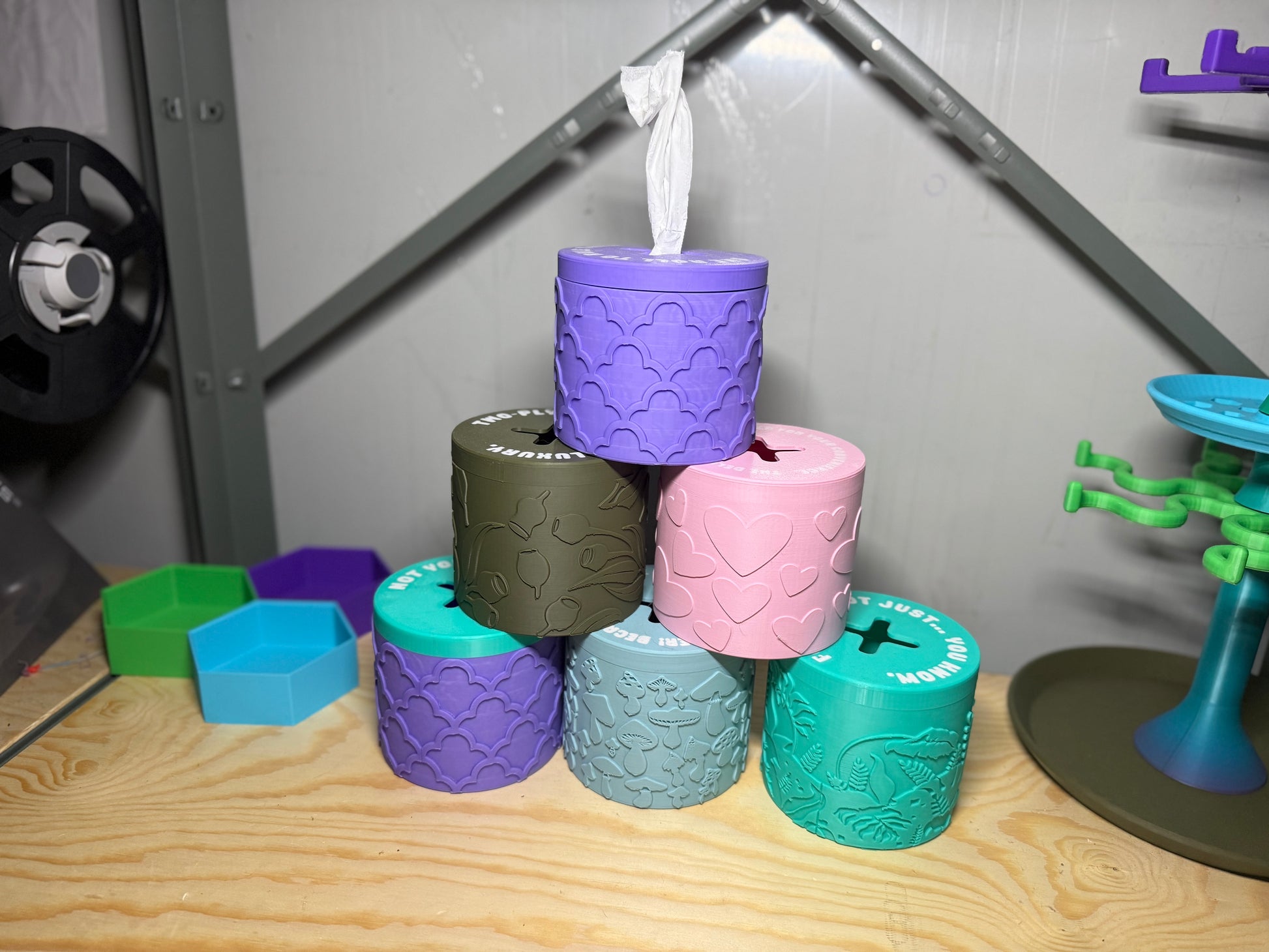 This Container fits a large quilton size toilet roll inside, as an off grid family, we use toilet paper as tissues, and found the rolls would get unravelled or dirty, so I saw something similar online and decided I had to design one to suit me!